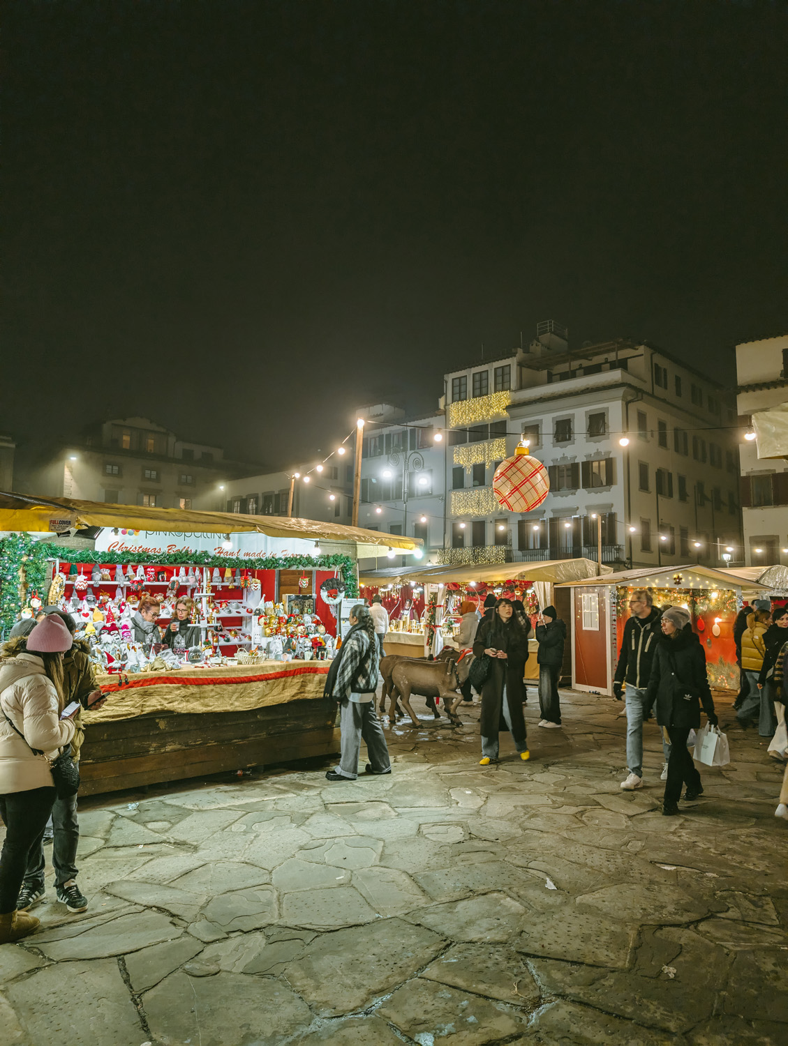 Florence has always held a special place for me, wandering through the green gardens tucked behind the Pitti Palace, tracing the Arno’s curve under the Tuscan sun, or lingering in a lively piazza with a cold spritz in hand. But planning a winter return to a city I’d only ever known in summer sparked a quiet curiosity. What would the experience be like without those sun-soaked rituals? What would fill the space where my warm-weather memories once lived? But what I found during Christmas in Florence was a city that felt even more charming and somewhat mysterious under the enchanting twinkle lights and crisp winter skies, where quiet courtyards glowed softly. Every corner seemed to whisper a different kind of magic.