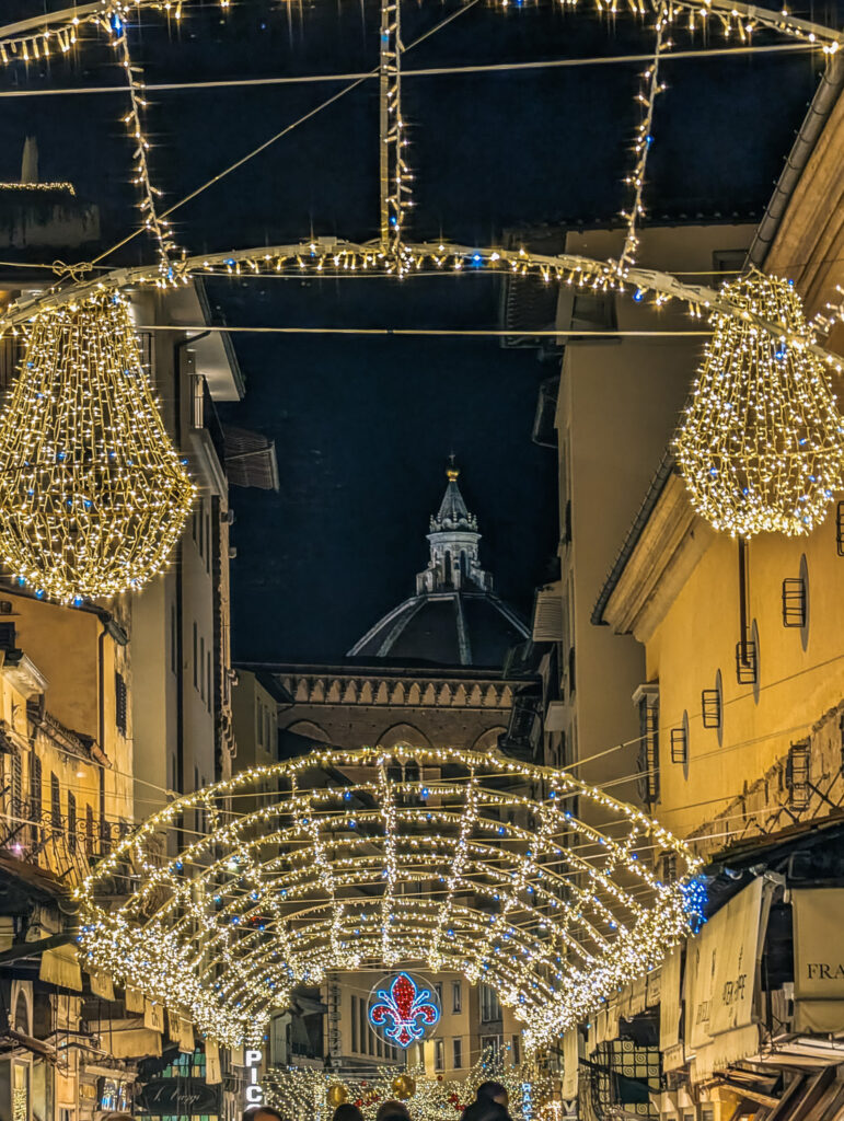 If you’re visiting Florence in December, the lighting displays typically switch on around December 7th and linger until January 7th. The sweet spot to wander the city looking at the lights is just after dusk, roughly 5:30 pm, when the sky still clings to its last sliver of blue, and the lights take on an almost surreal glow.