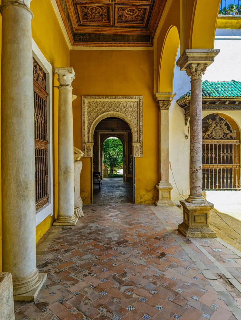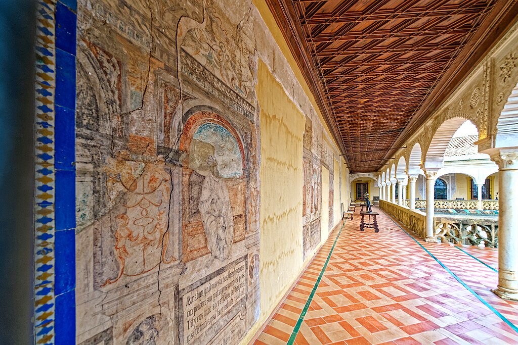 With its horseshoe arches and intricate plasterwork, that original courtyard pulsed with both Christian and Islamic artistry. Don Pedro and his wife, Doña Catalina de Ribera, soon transformed the site into a Mudejar-style palace centered on a cool, tiled courtyard. Mudéjar art is characterized by elaborate geometric patterns, colorful glazed tilework, and finely carved wood and plaster, it reflects the craftsmanship of Muslim artisans working in Christian-ruled Spain between the 13th and 16th centuries.