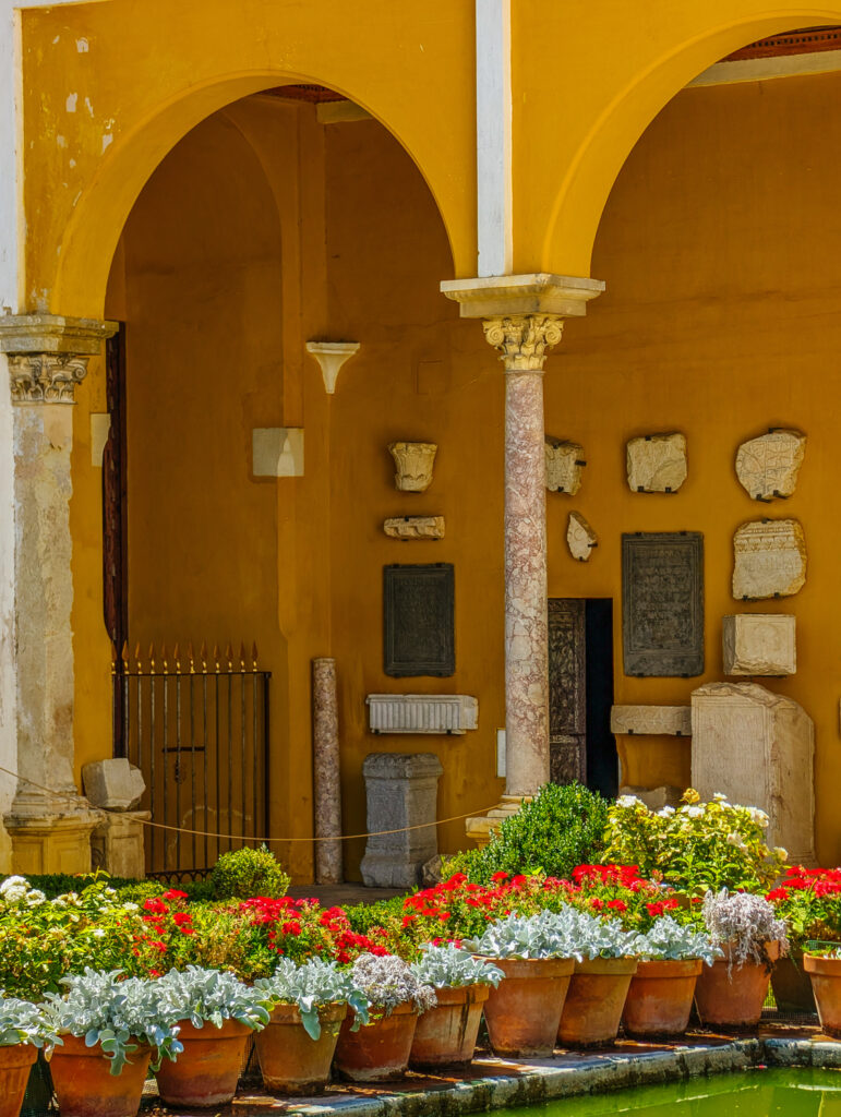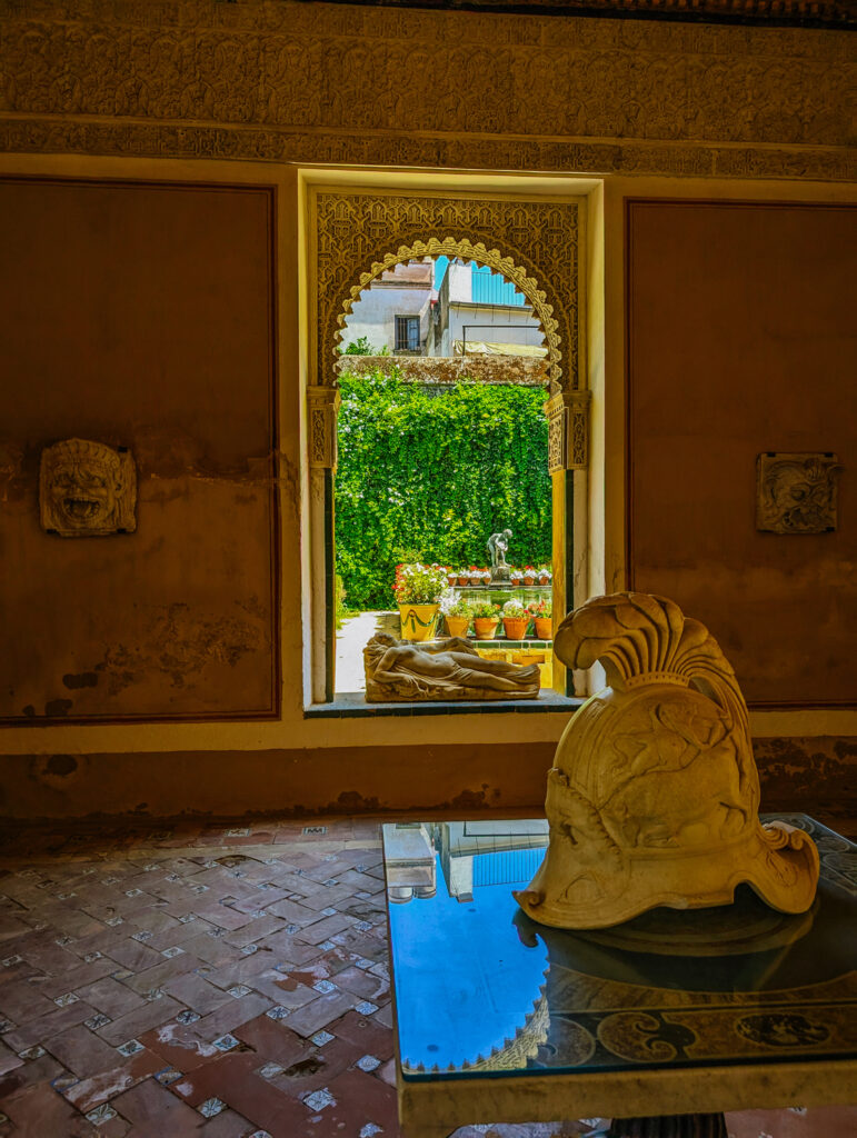 Once inside the palace, your first stop is the Small Garden, reached by passing through the Zaquizamí Corridor. The name “Zaquizamí” comes from the Arabic sáqf fassamí, meaning “fragile roof” or “roof in the sky.” As you walk along this passageway, you’ll notice three beautifully crafted Renaissance iron grilles, as well as fragments of ancient Roman plasterwork embedded into the walls like a mosaic of antiquity.