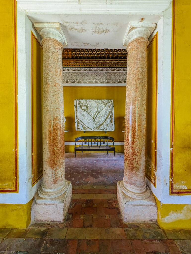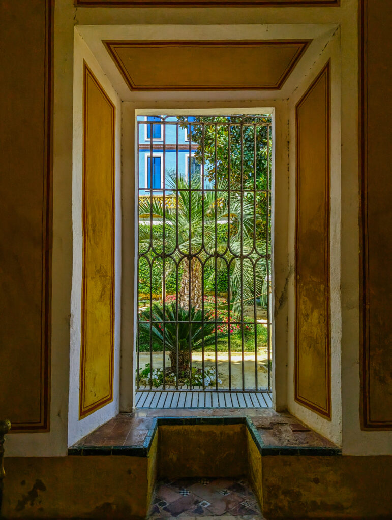 The final two areas to explore within the palace lie on the western side, just beyond a wrought iron gate installed in 1861. This gate closes off the archway leading into the main patio, and at its center, you’ll notice the finely crafted coat of arms of the House of Enríquez, seamlessly woven into the design.