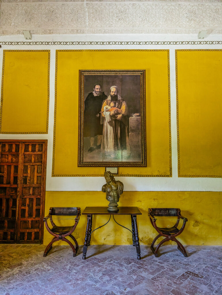 Behind the statue of Athean, you can enter the Salón de Descanso de los Jueces (Judges’ Resting Room). Many of the rooms in Casa de Pilatos are named in reference to the Passion of Christ, a tradition that emerged after the Marquis of Tarifa’s pilgrimage to Jerusalem and his creation of a dramatic Vía Crucis (Way of the Cross) within the palace grounds. This theatrical devotion influenced not only the route itself but the naming of the rooms, such as the Judges’ Resting Room, which takes its name from a biblical reference to the 71 members of the Sanhedrin of Israel who judged Christ before the Passion.