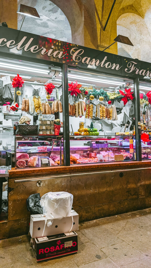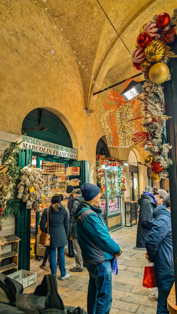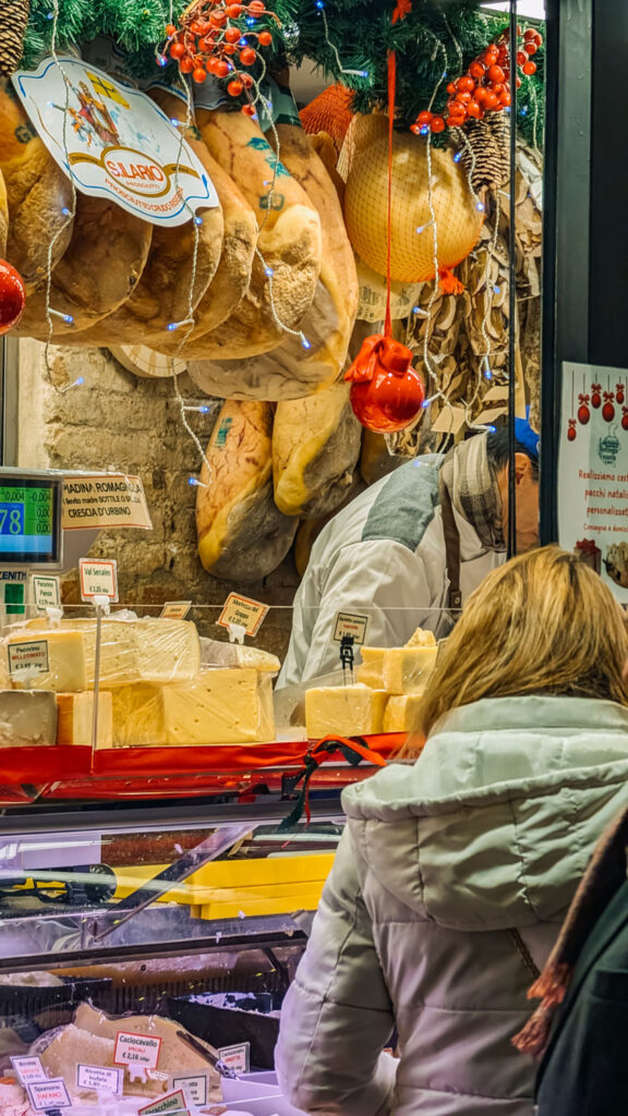 At Christmas, the entire market is decorated with festival baubles, heaps of ivy and fresh fir wreaths and dazzling twinkle lights that shine above your head. Locals were packed into the marketplace on the days leading up to Christmas, buying up all the freshest ingredients to host Christmas dinners Italian style.