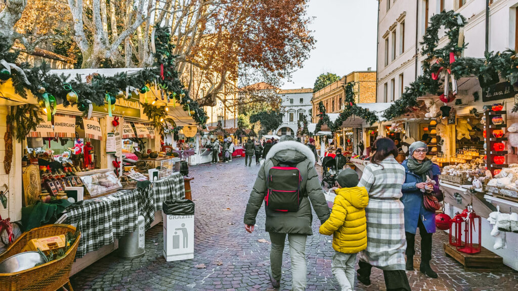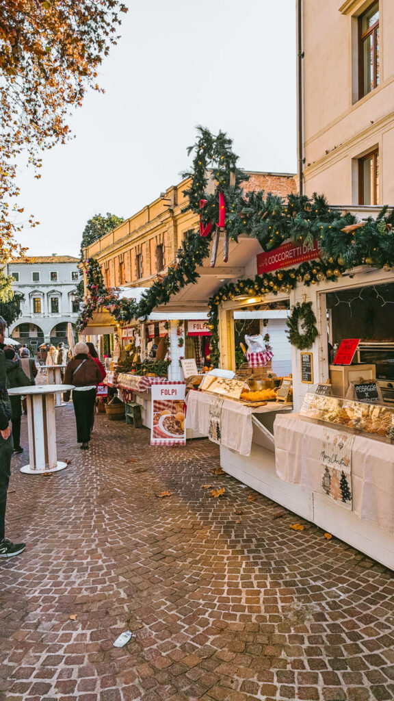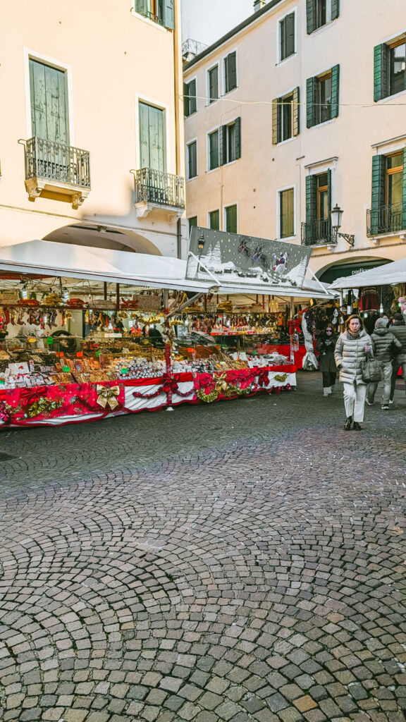 By late morning, the Christmas market in Piazza Eremitani is in full swing. Open from late November into early January, the festive Eremitani Village in Piazza Eremitani is where you’ll find a charming mix of artisan markets, traditional carousels, and seasonal food stalls. The market isn’t huge, and the atmosphere leans more toward local charm than tourist spectacle, but it’s a delightful mix of tradition and community that makes the whole city feel festive without feeling overdone.