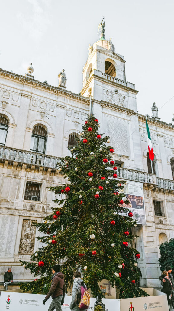 At Christmas, the space just outside the palazzo becomes a focal point for the city’s celebrations. It’s here, along the Liston, that Padua’s enormous Christmas tree is installed each year, creating a festive landmark in one of the most visible and well-loved corners of the historic centre.