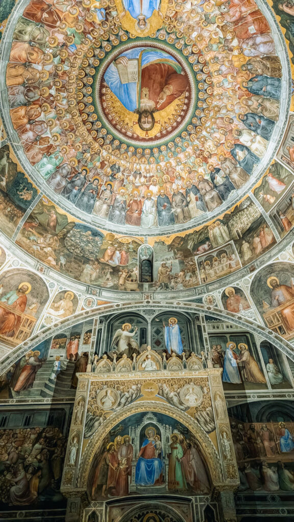 Visiting during the Christmas season adds depth to the experience. The frescoes don’t just illustrate the birth of Christ; they invite you to stand quietly in front of them, surrounded by colour, light, and layered meaning. The Nativity scene in particular, rendered with warmth and humanity, takes on added resonance in December.