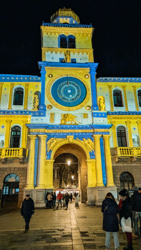 And, in my opinion, there is no more beautiful time to see it than at Christmas time! Streets are strung with warm white lights that make the stone buildings glow. Historic facades are lit with subtle projections that highlight the architecture without overpowering it. Trees in the piazzas sparkle, and shop windows lean into a mix of tradition and craft. The city hosts several Christmas markets, each set in a different corner of the centre, making it one of the most atmospheric places to visit in Italy during the holidays. So come with me now on a full guided tour of Christmas in Padua.