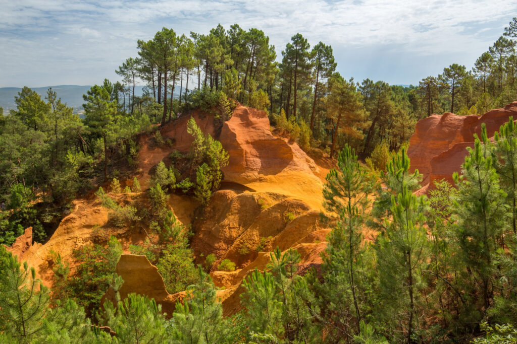 The city of Roussillon is nestled in the beautiful countryside of the Luberon. But this city really sets itself apart from the rest as it is surrounded by these remarkable ochre cliffs. These magnificent geological formations showcase vivid colours ranging from deep reds to vibrant yellows, creating a surreal and enchanting environment. One of the best ways to get up close to these amazing formations is by hiking along the “Sentier des Ocres,” the site of the former ochre quarries of Roussillon.