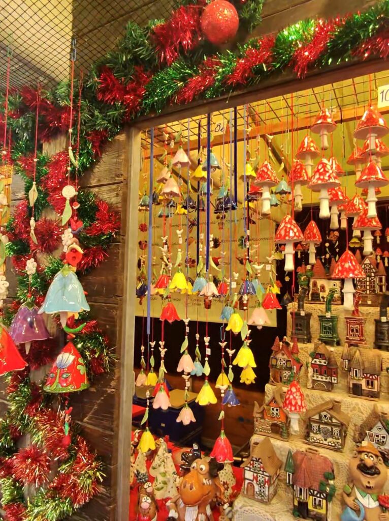 Here, more than 50 wooden chalets line the pedestrian avenues, brimming with handcrafted gifts, sparkling decorations, artisanal jewellery, and irresistible street food. From piping-hot fritters to sweet seasonal treats, the atmosphere is cozy and family-friendly, with twinkling lights, cheerful music, and plenty of space to browse.